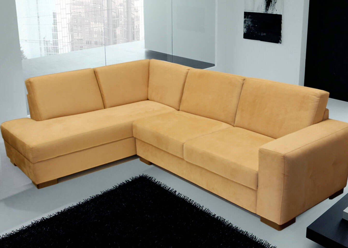 Sofá de Canto em L, Chaise Lado Esquerdo, Veludo Bege - Enz005