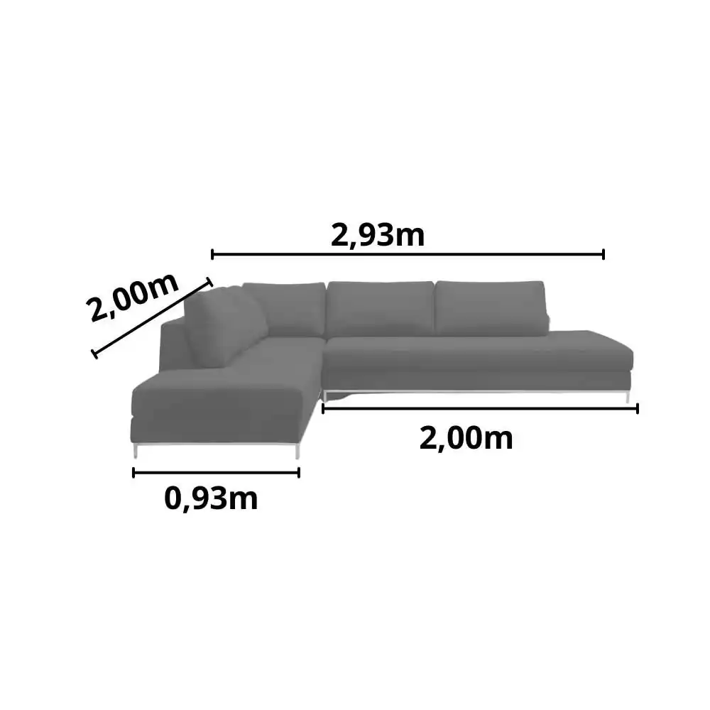 COMPRIMENTO SOFÁ MONTADO: 2,93 m x 2,00 m